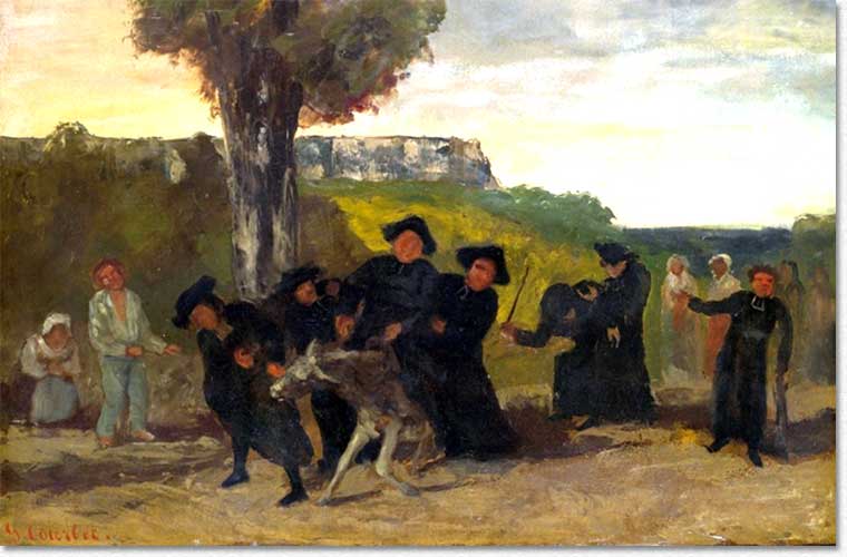 Retour de la Conférence, esquisse de Gustave Courbet; en passant la souris : la gravure. A Marolles, le vicaire Huvier devait se rendre