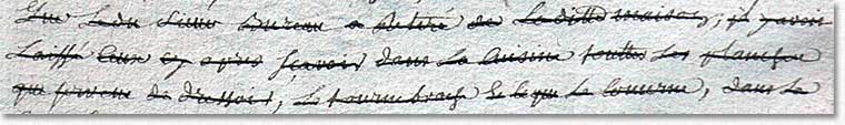 Tout ceci fut proprement raturé. Charles Bureau ne laissait absolument rien à son successeur; plus de buffet, d'armoire, de tournebroche, plus la moindre petite planche... a-t'il seulement laissé la porte verte? Est-ce ainsi que l'on traite quelqu'un qu'on apprécie, ou cette mesquinerie serait-elle révélatrice des tensions entre les deux prêtres? Notons qu'Etienne Huvier prit sa revanche,